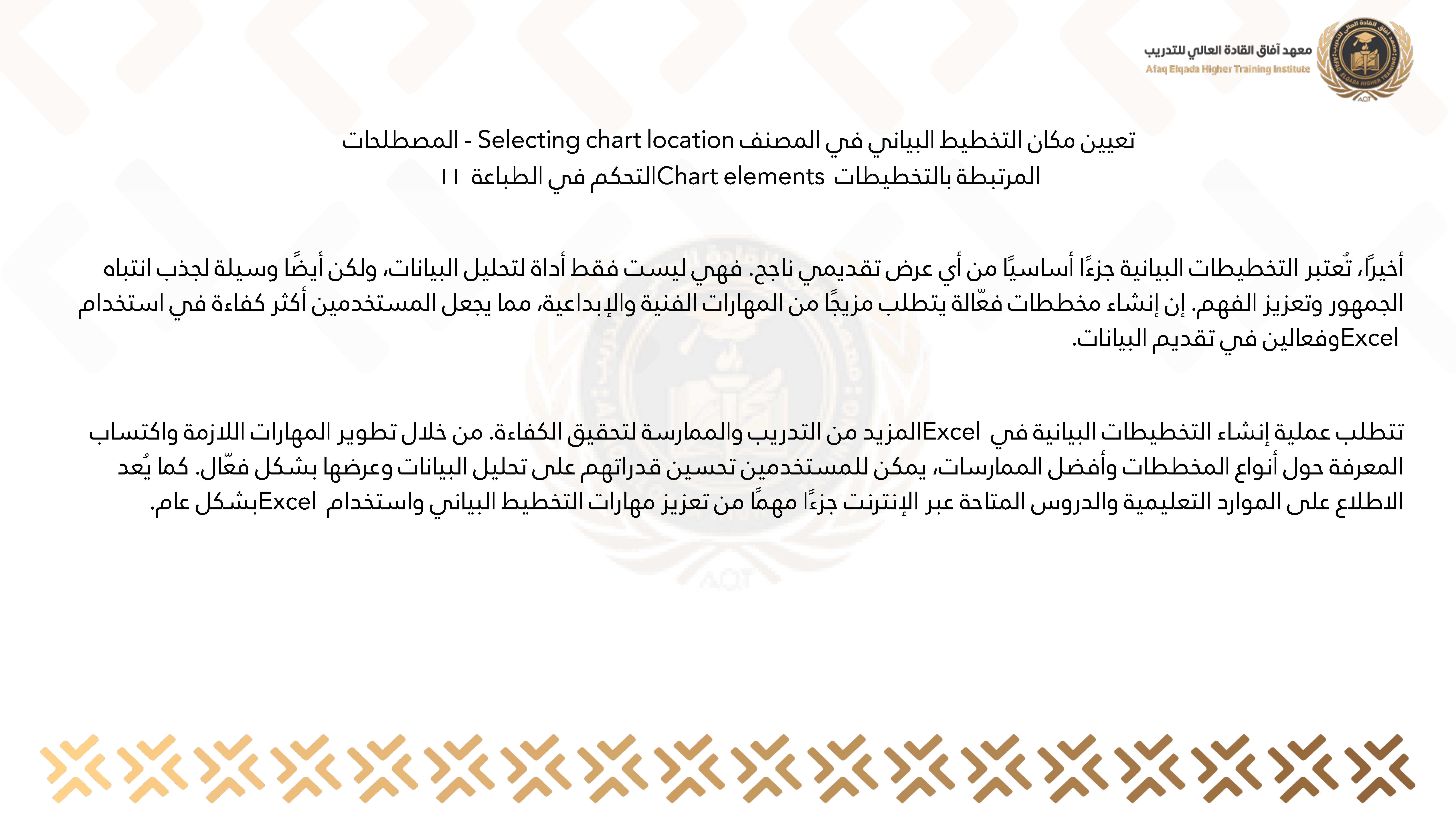 تعيين مكان التخطيط البياني في المصنف Selecting chart location - المصطلحات المرتبطة بالتخطيطات Chart elements التحكم في الطباعة. 11