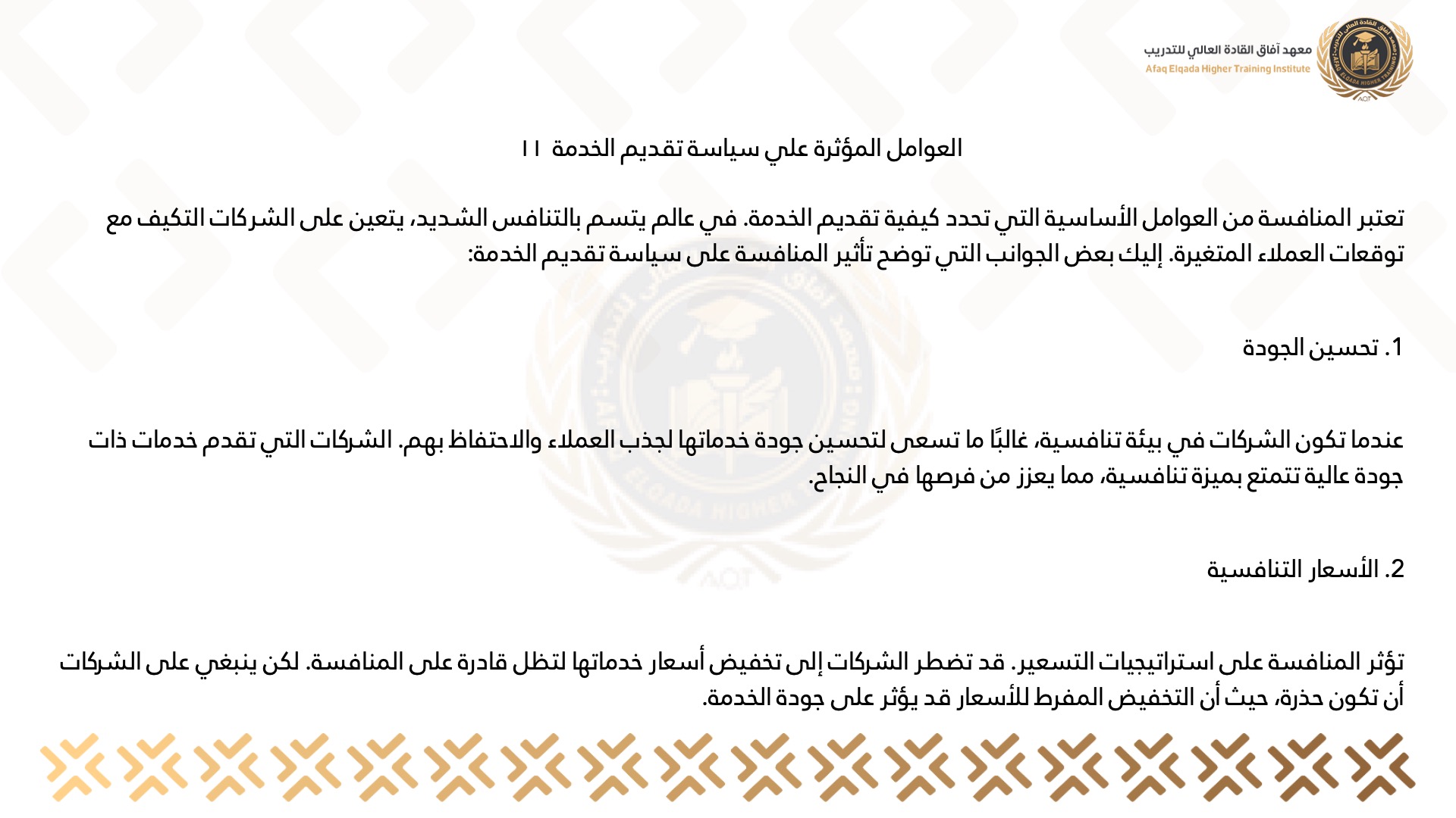العوامل المؤثرة علي سياسة تقديم الخدمة 11