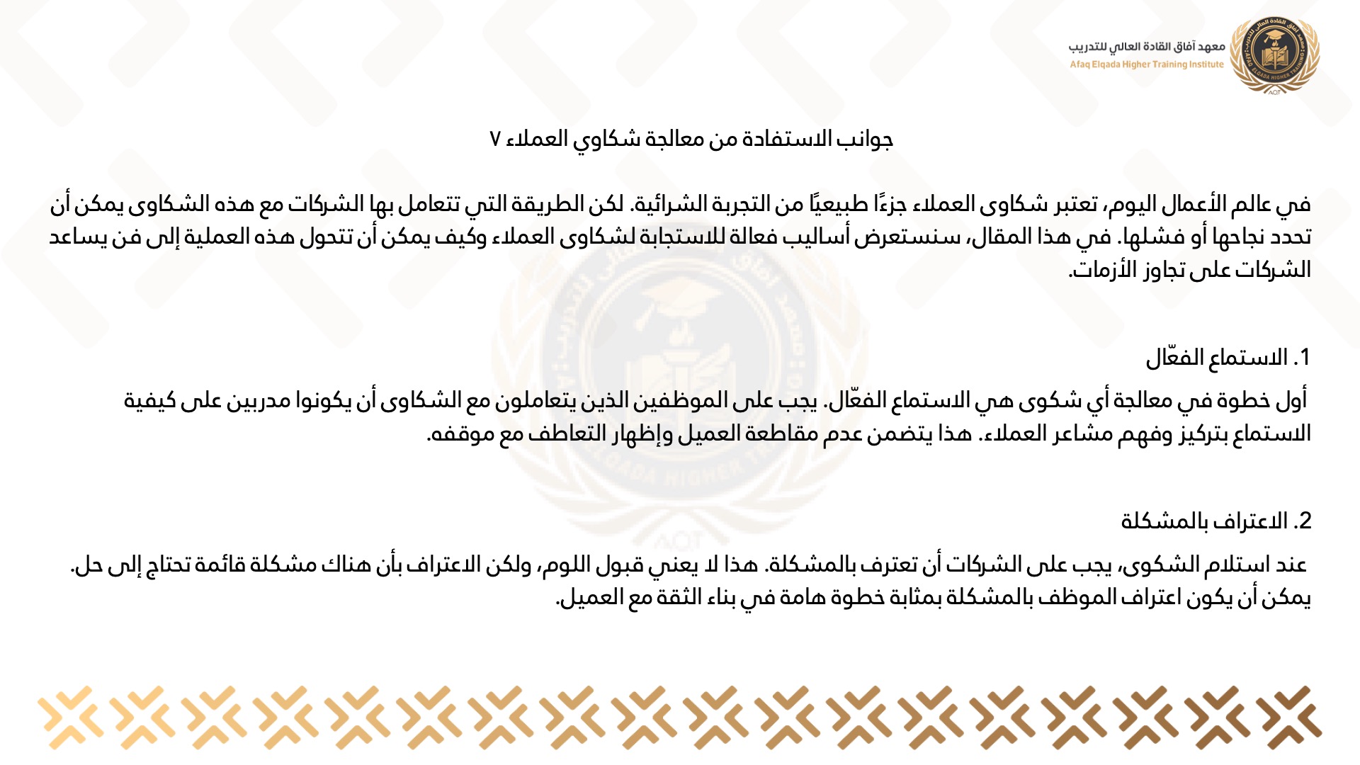 جوانب الاستفادة من معالجة شكاوي العملاء 7