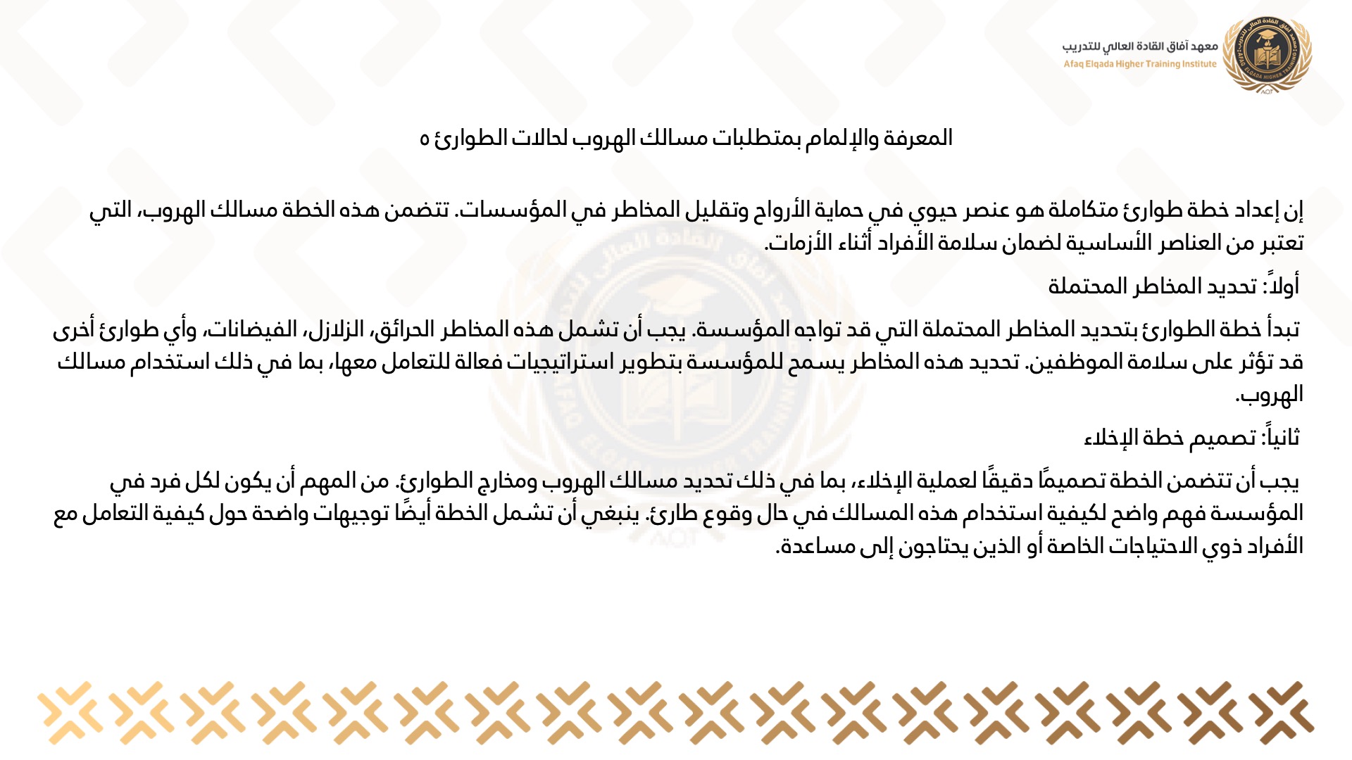 المعرفة والإلمام بمتطلبات مسالك الهروب لحالات الطوارئ 5