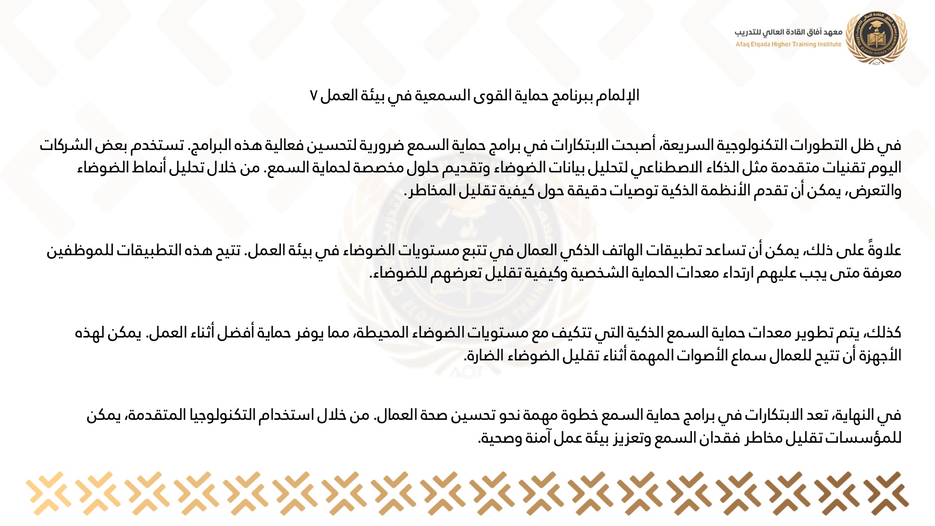 الإلمام ببرنامج حماية القوى السمعية في بيئة العمل 7
