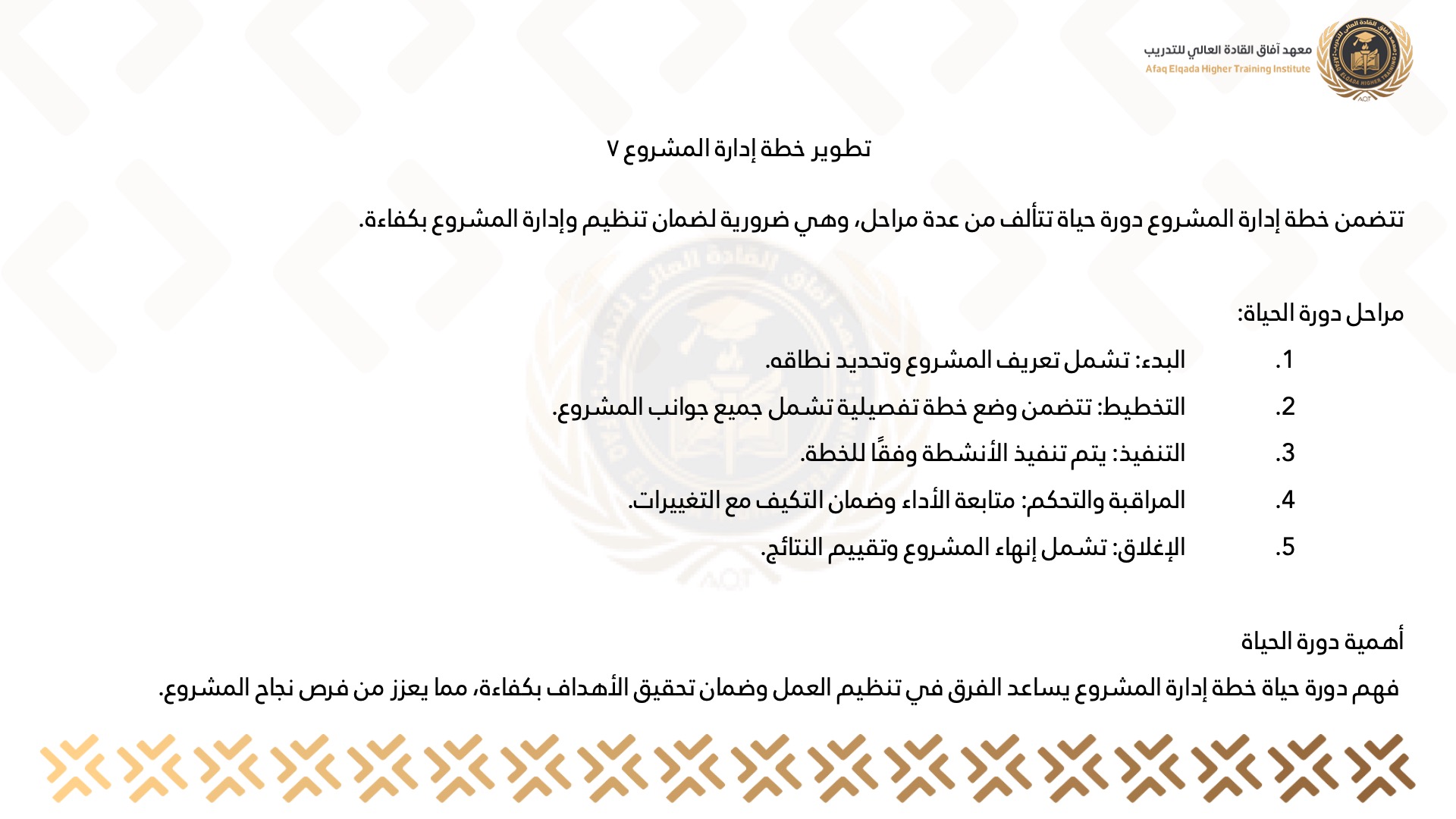 تطوير خطة إدارة المشروع 7