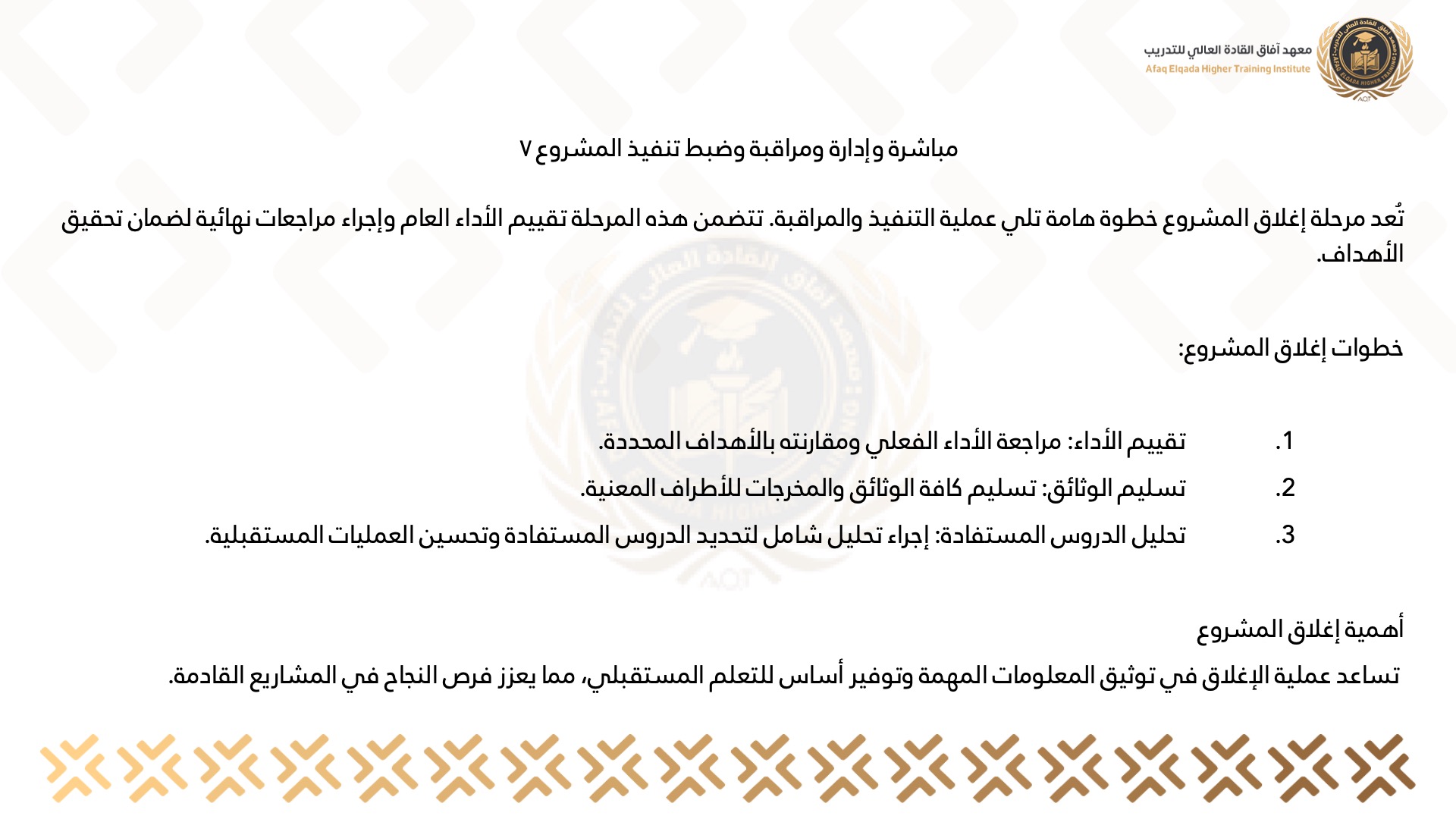 مباشرة وإدارة ومراقبة وضبط تنفيذ المشروع 7