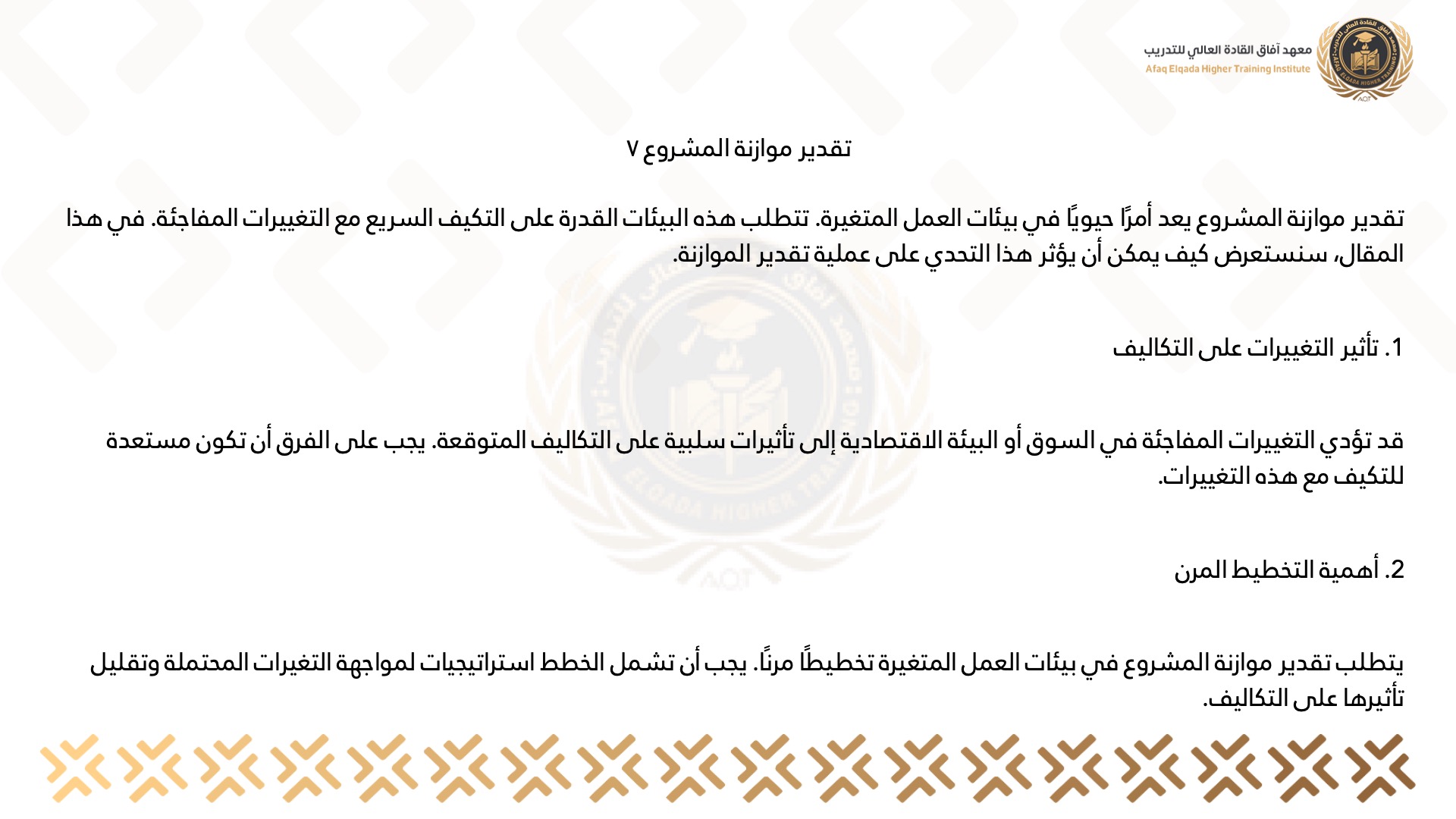 تقدير موازنة المشروع 7