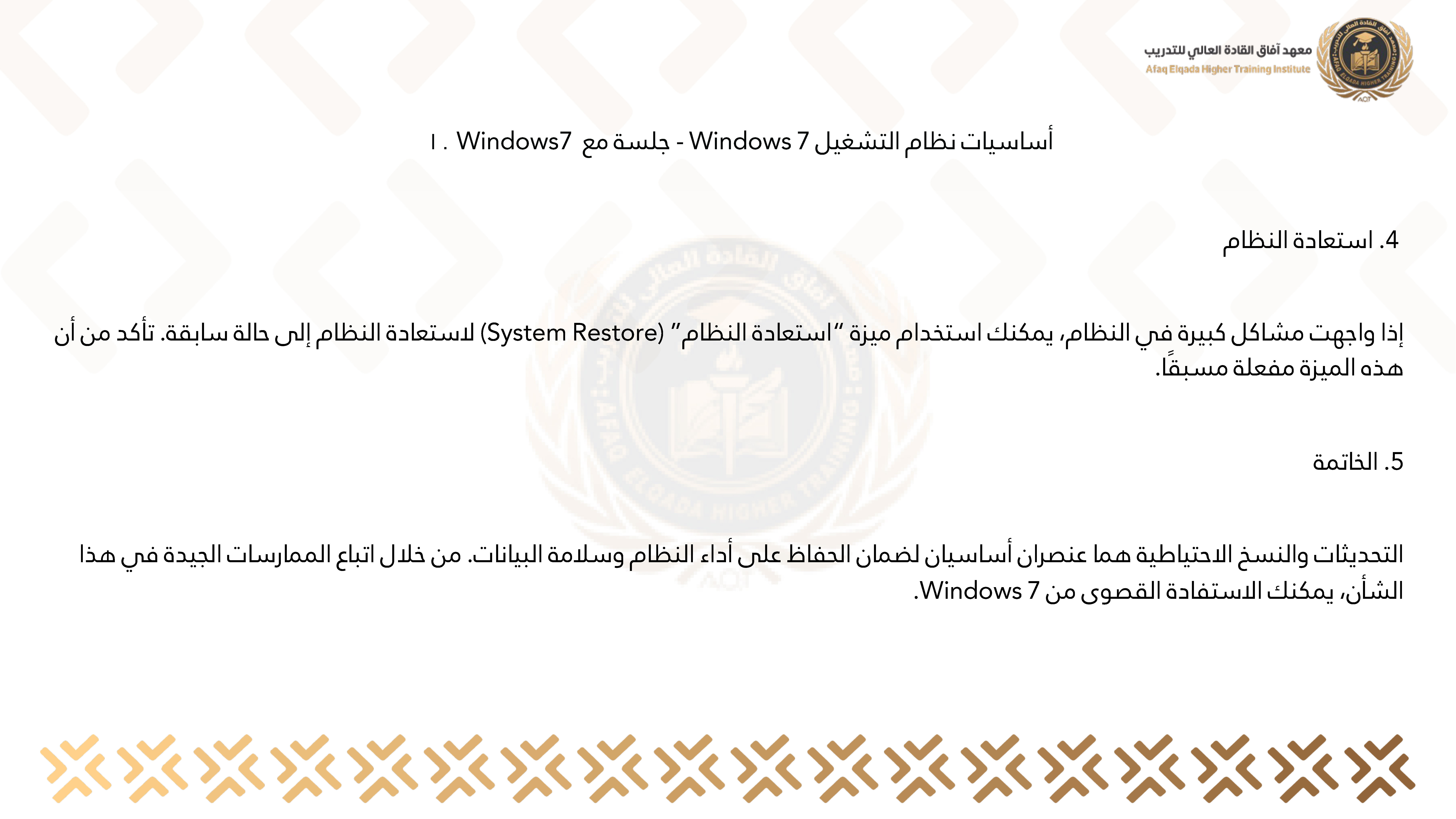 أساسيات نظام التشغيل 7 Windows - جلسة مع Windows7. 7