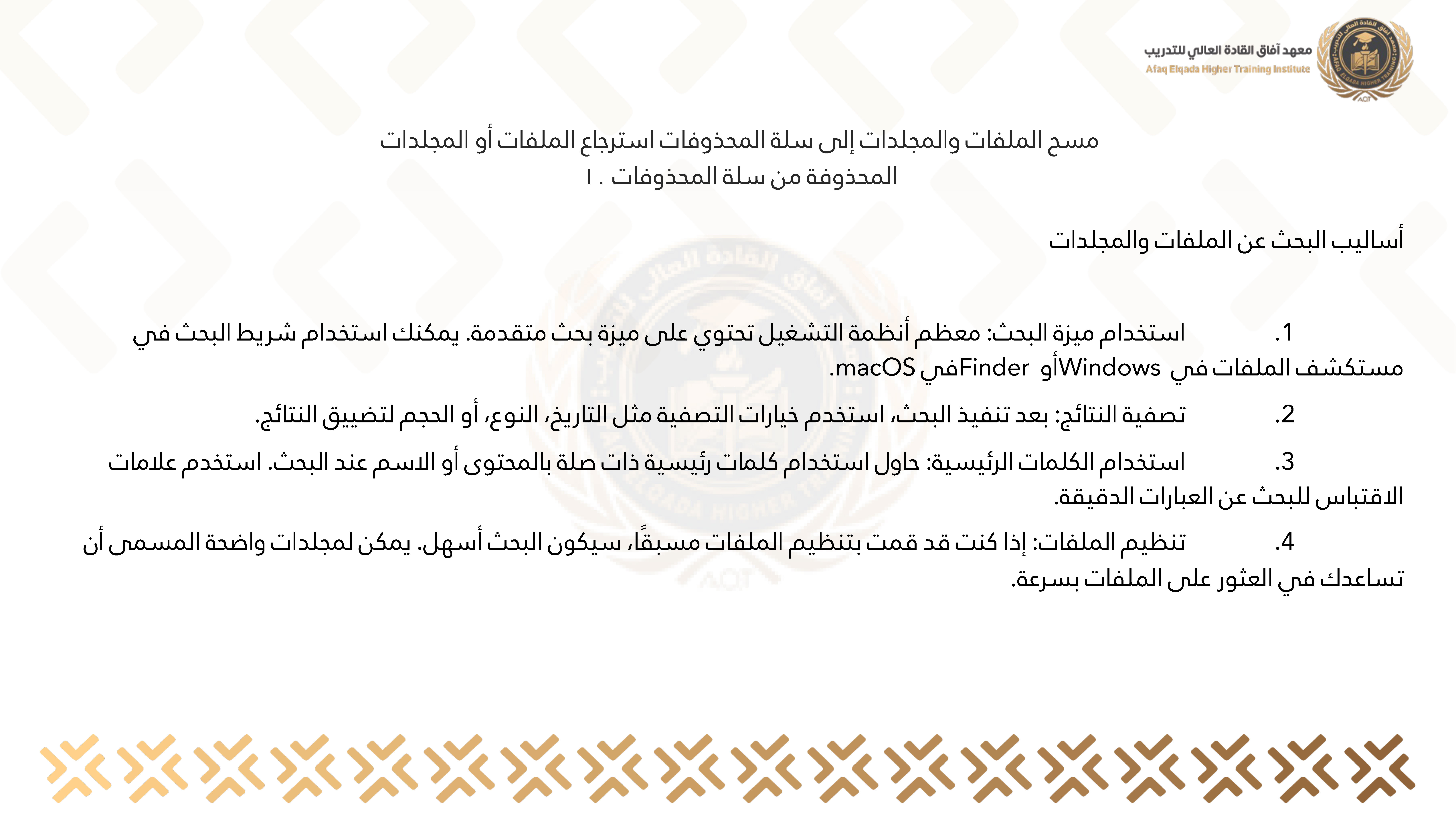 مسح الملفات والمجلدات إلى سلة المحذوفات استرجاع الملفات أو المجلدات المحذوفة من سلة المحذوفات 10