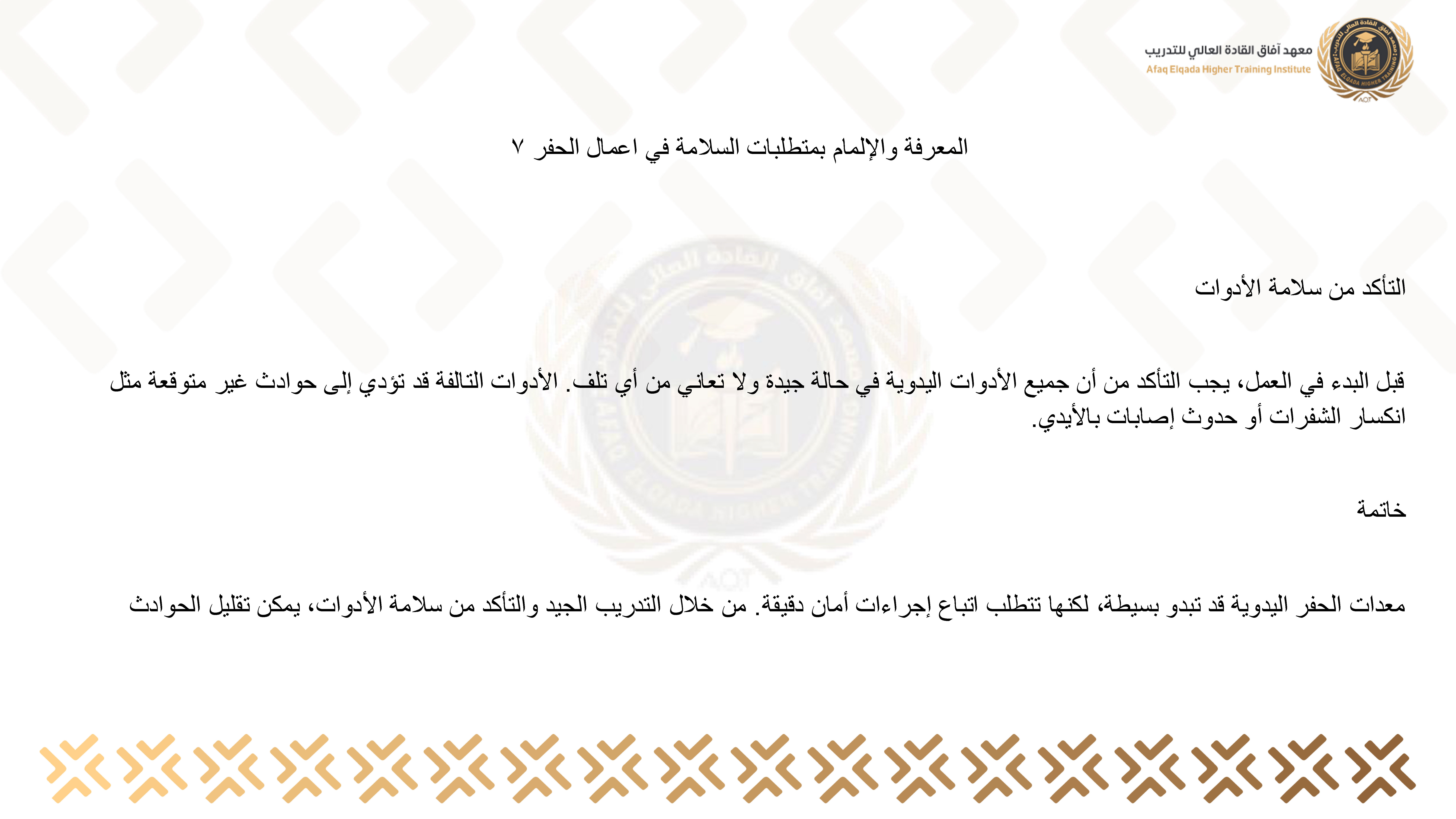المعرفة والإلمام بمتطلبات السلامة في اعمال الحفر 7
