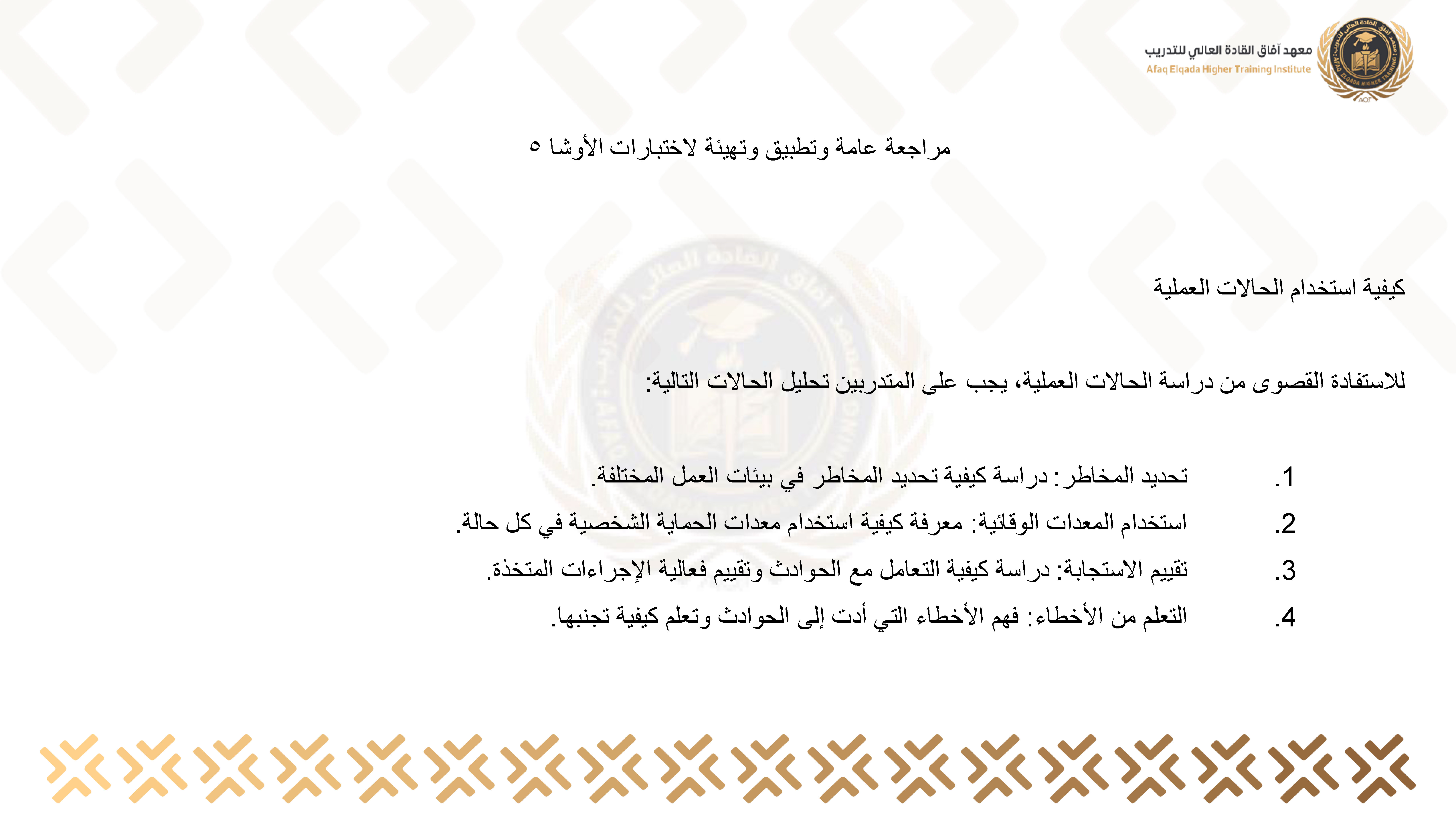 مراجعة عامة وتطبيق وتهيئة لاختبارات الأوشا 5