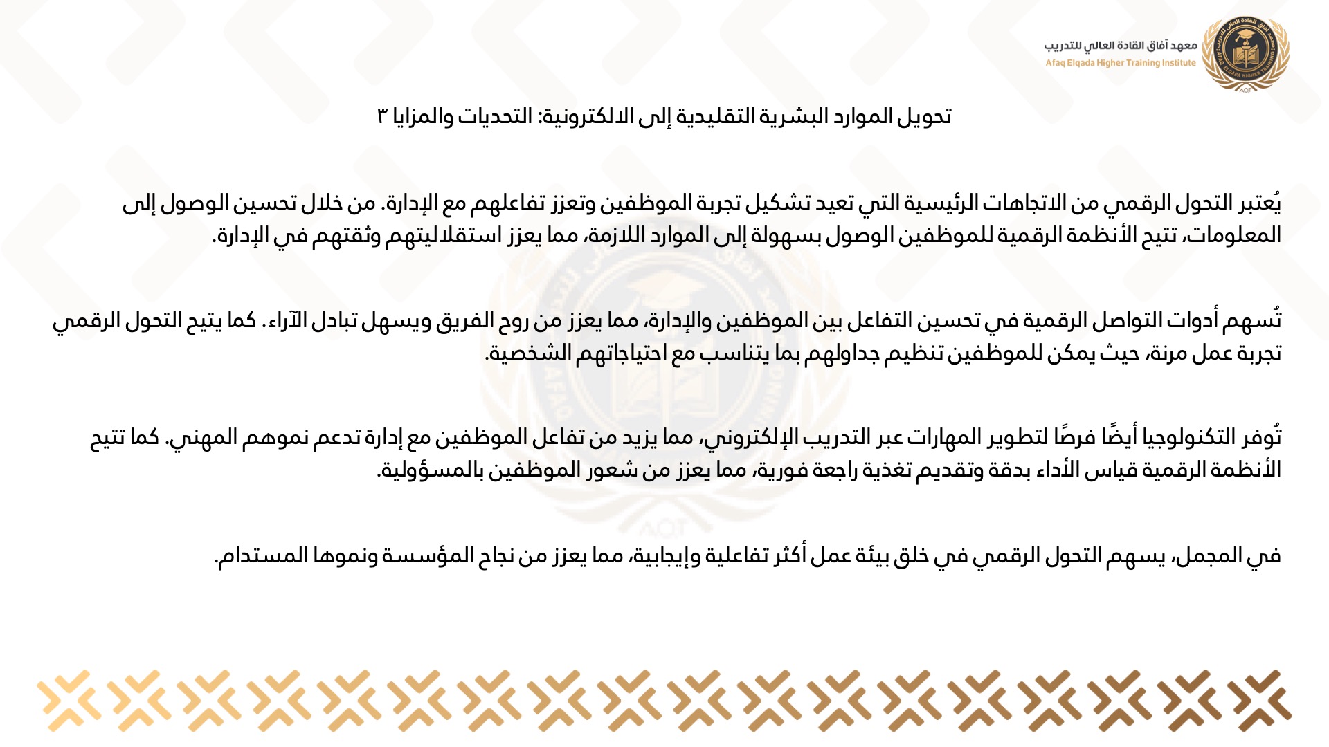 تحويل الموارد البشرية التقليدية إلى الالكترونية: التحديات والمزايا 3