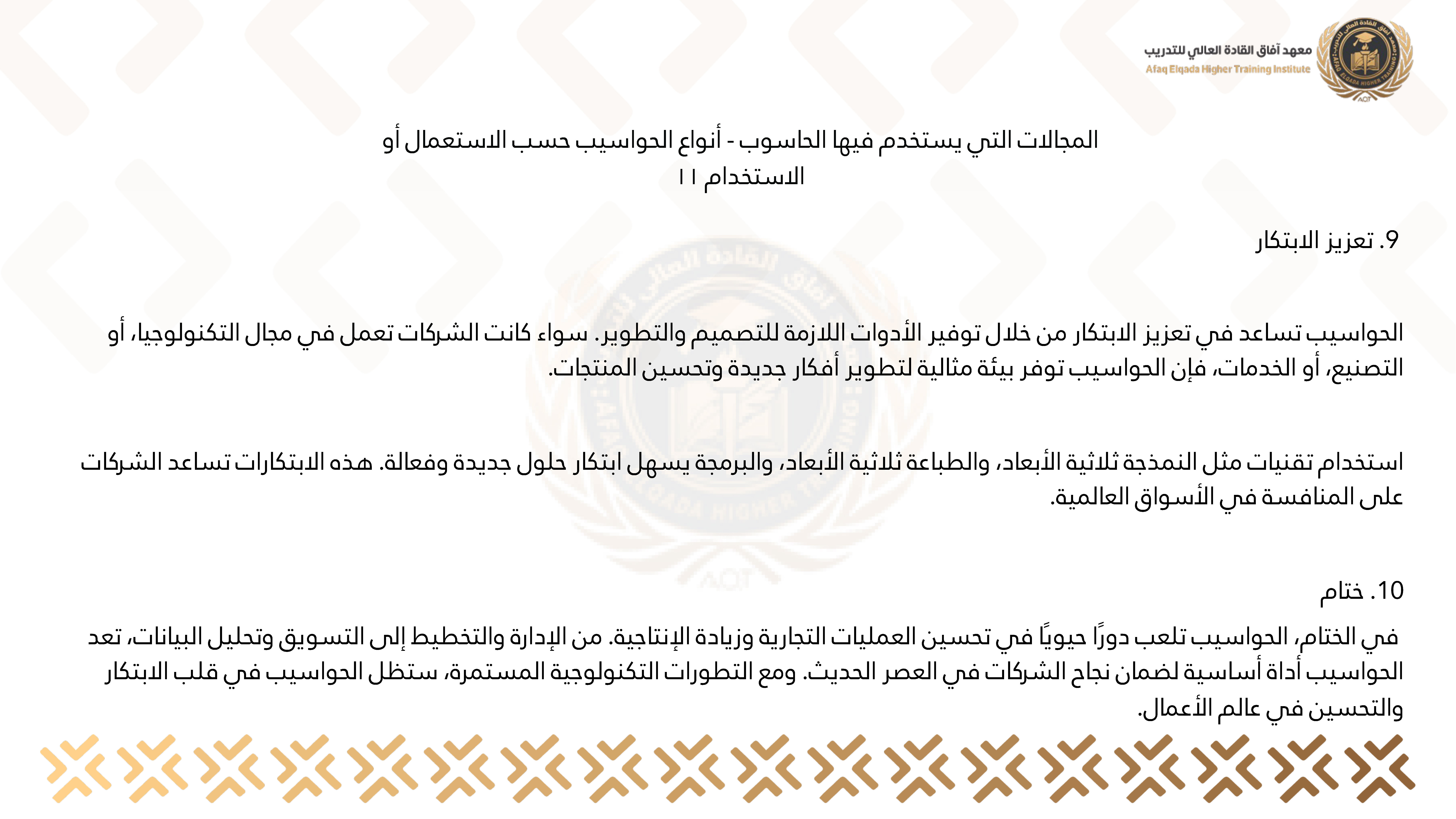 المجالات التي يستخدم فيها الحاسوب - أنواع الحواسيب حسب الاستعمال أو الاستخدام 10