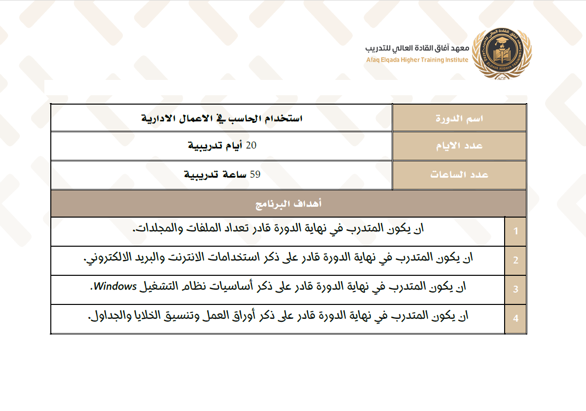 يهدف هذا البرنامج التدريبي إلى تزويد المشاركين بالمهارات الأساسية والمتقدمة في استخدام الحاسب الآلي لتسهيل وإدارة الأعمال الإدارية بفعالية. يتناول البرنامج كيفية استخدام التطبيقات المكتبية مثل Microsoft Word، Excel، PowerPoint وغيرها من الأدوات الإلكترونية التي تساعد في تحسين كفاءة العمل الإداري، إعداد التقارير، وتنظيم البيانات. المحتوى المفتوح